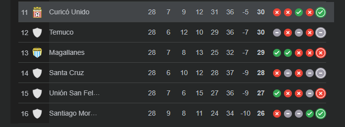 La fecha dejó resultados que mantienen la tensión en el fondo: el colista Santiago Morning ganó, Temuco y Santa Cruz empataron, Magallanes cayó con Copiapó, y Unión San Felipe perdió frente a San Marcos.