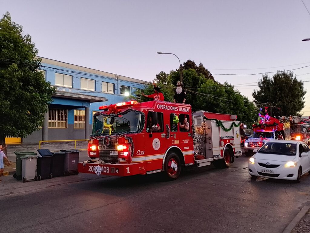 Con una alta convocatoria y un ambiente cargado de alegría, Bomberos de Curicó finalizó con gran éxito su tradicional caravana navideña, iniciativa que llevó el espíritu de Navidad a niños, niñas y familias de distintos puntos de la ciudad.
