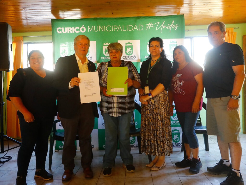 El alcalde George Bordachar junto a la dirección jurídica de la Municipalidad de Curicó, dieron hicieron entrega de la escritura que acredita que la organización es dueña de la sede social.