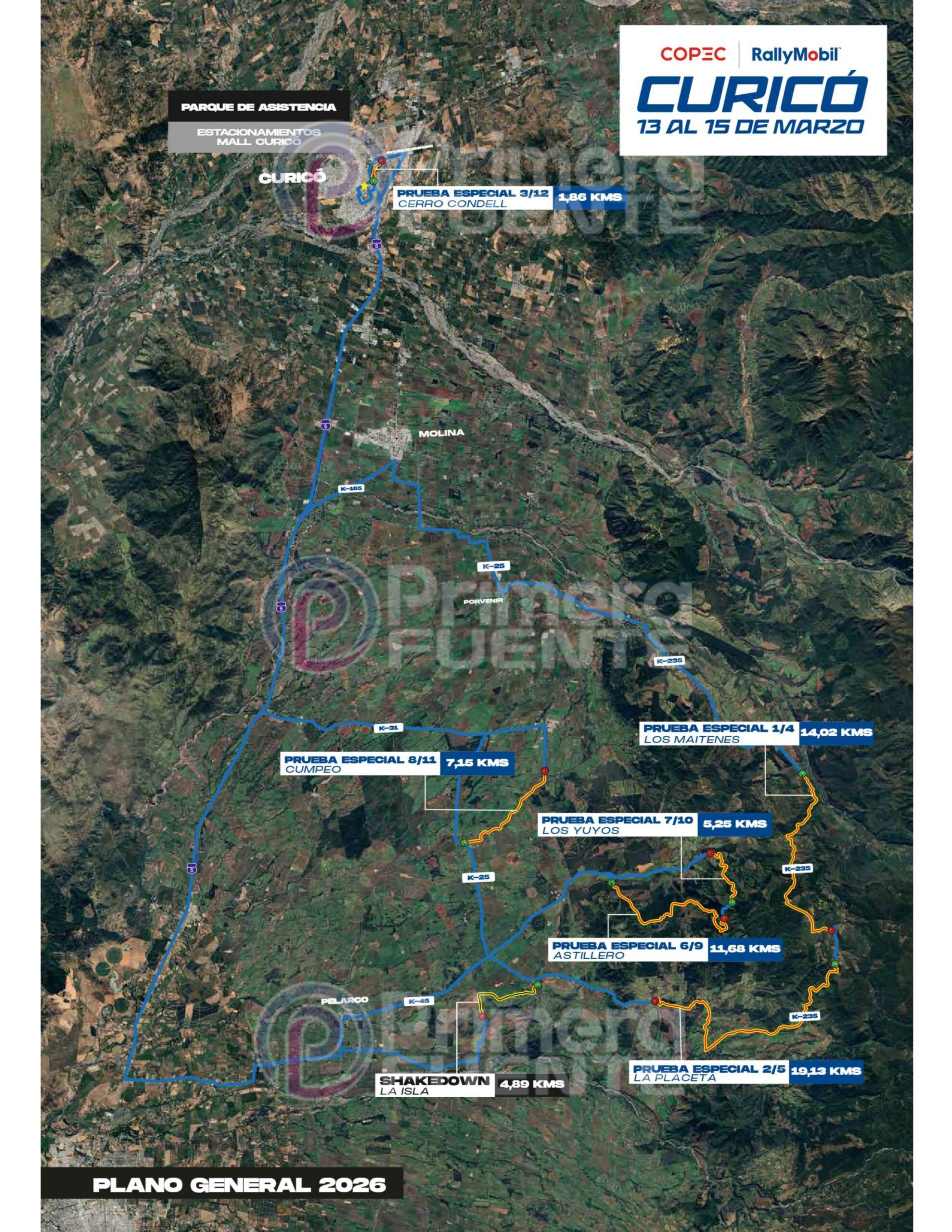 - PE 03/ PE 12 Cerro Condell Curicó: Sábado 14 13:00 / Power Stage Domingo 15 16:15 Hrs.