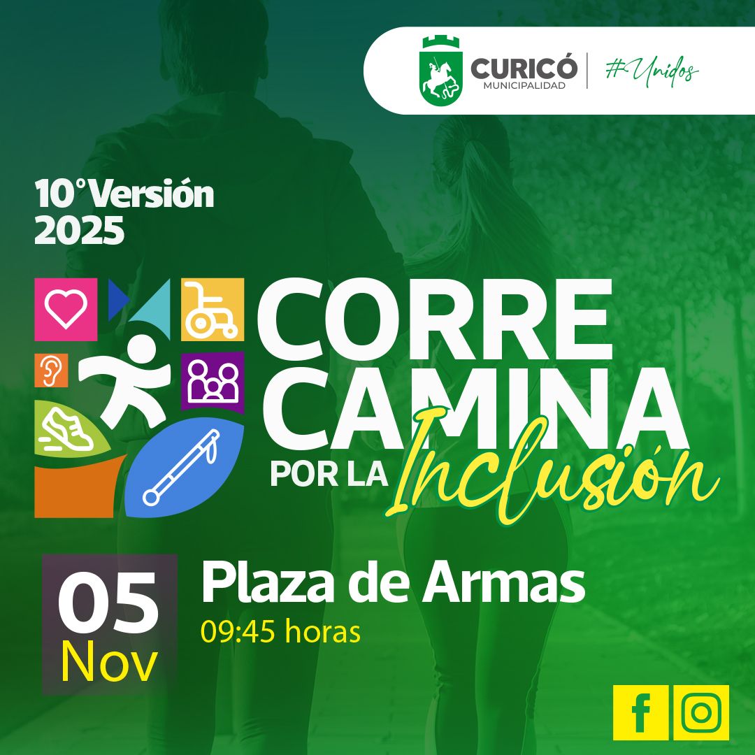 Este miércoles 4 de noviembre y desde las 09:30 hrs en la Plaza de Armas está preparada la décima versión de la Corre Camina por la Inclusión y muestra de deportes adaptados.