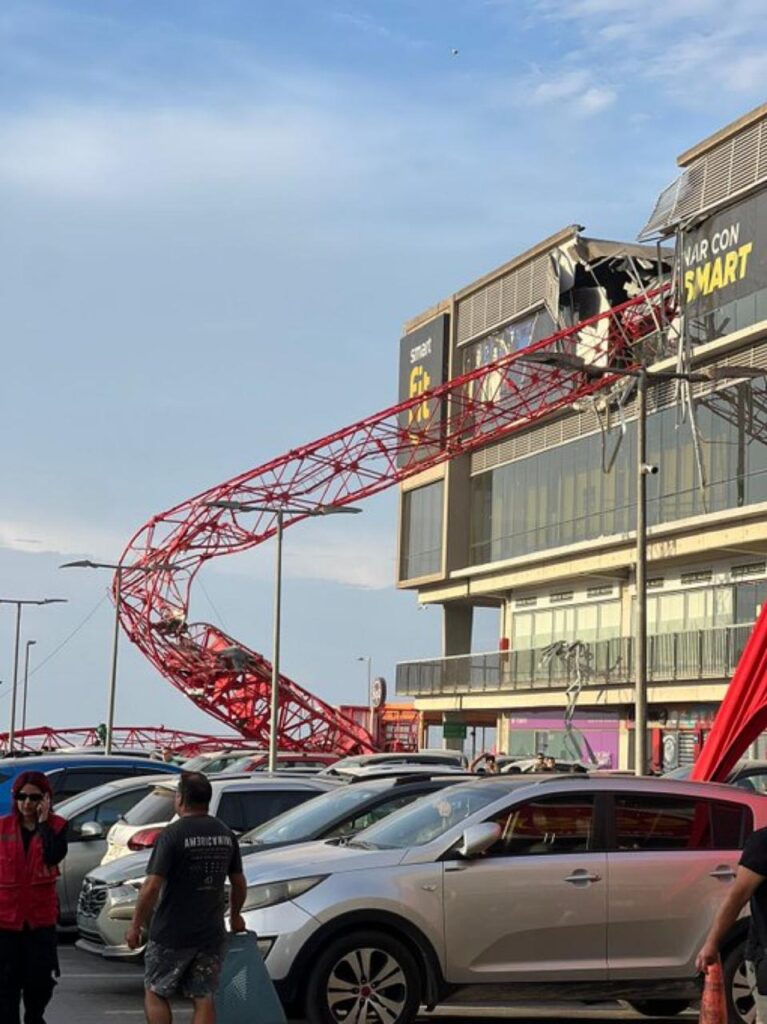 Una grúa cayó la tarde de este sábado por sobre un gimnasio frente a un conocido centro comercial de Arica