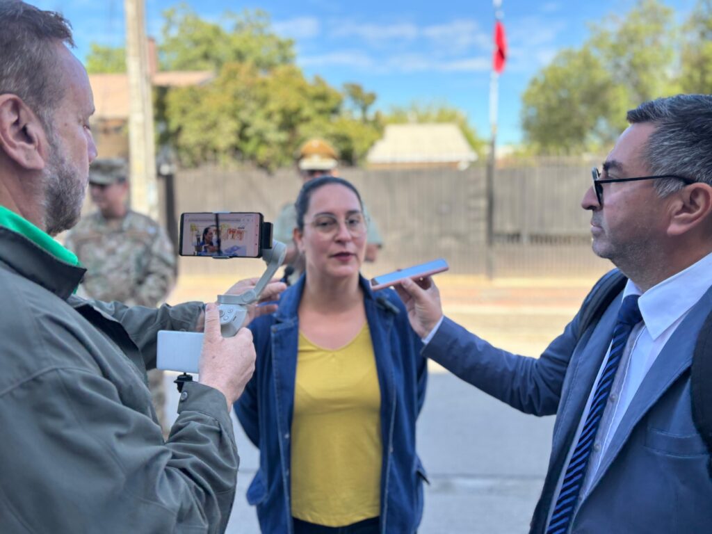 La Delegada Presidencial Provincial de Linares, Aly Valderrama, junto al Coronel Álvaro Inostroza Avaria, Director de la Escuela de Artillería, y al Prefecto de Linares, Fernando Osses, de Carabineros de Chile, entregaron declaraciones respecto al desarrollo de la jornada electoral en la provincia.